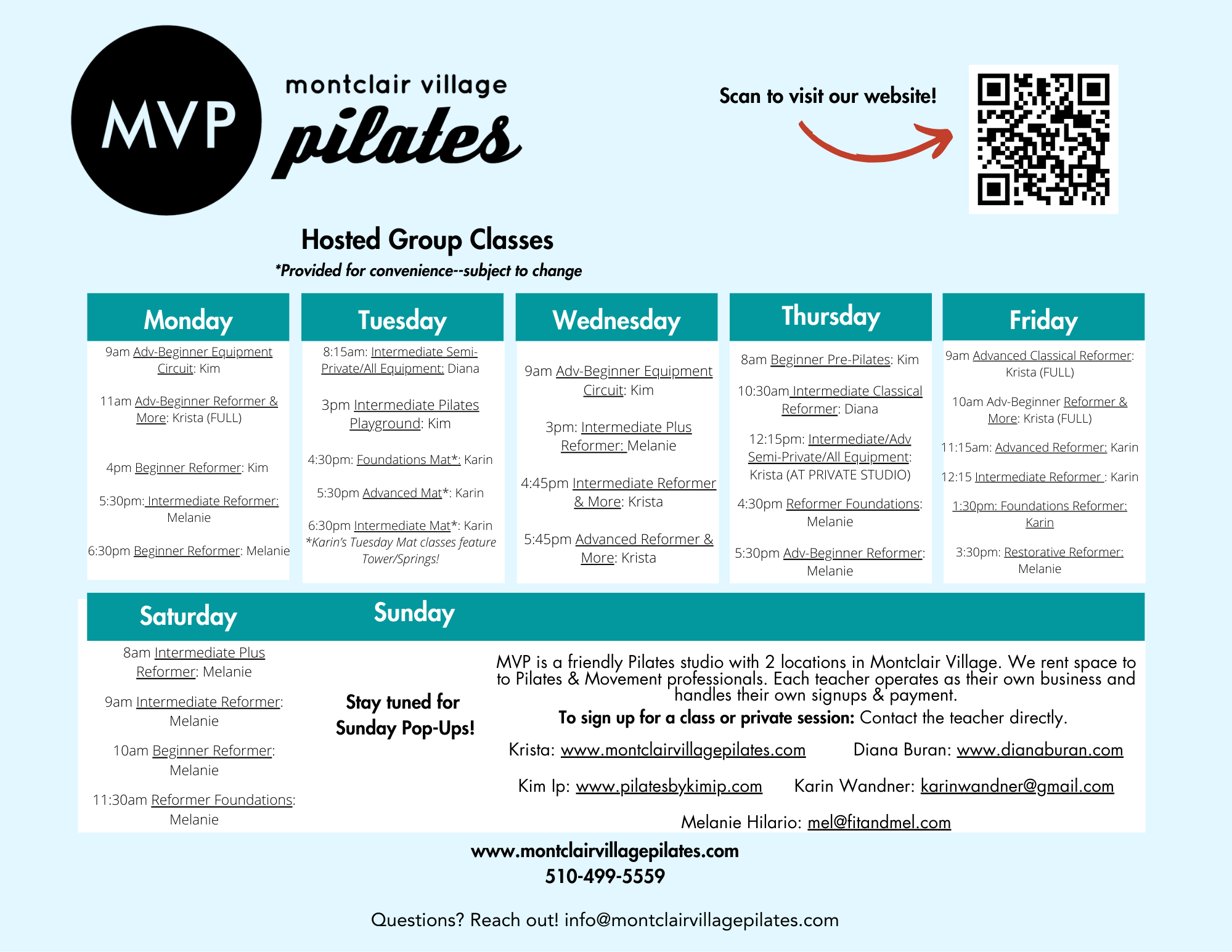 Click links on the schedule below for info on all teachers’ classes!